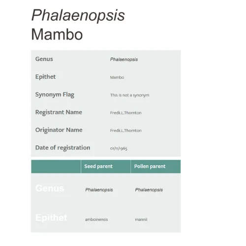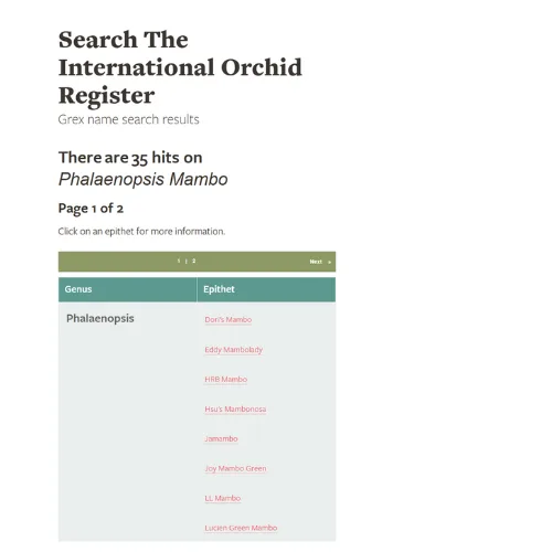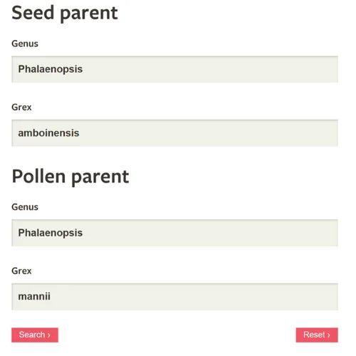 Za razliku od zvaničnog registra RHS, OrchidRoots je posebno vredan zbog velikog broja slika. Na ovaj način može se ne samo pročitati poreklo određenog hibrida, već i videti kako izgleda u kolekcijama širom sveta. Korisni odeljci poput „Lineage“ (rodoslov), „Images“ (fotografije) i „Compare“ (upoređivanje hibrida) omogućavaju dublje proučavanje istorije biljke i njenih karakteristika.