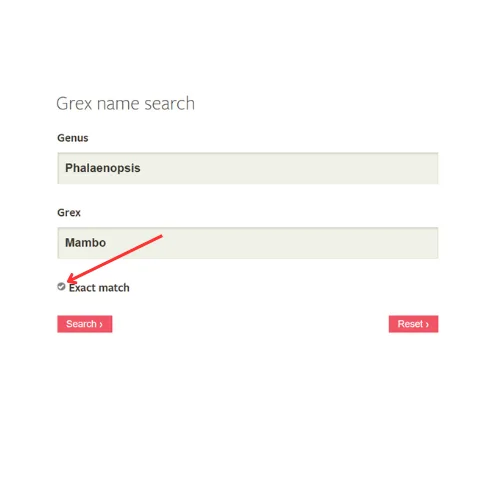 Na primer: Phalaenopsis Sogo Yenlin ‘Coffee’ (variegata) – ovde „variegata“ nema veze sa imenom sorte, već označava poseban šablon na listovima. „Coffee“ je ime konkretnog meriklona, koje se uvek piše u ovakvim navodnicima. Jedna sorta može imati više meriklona, a oni mogu izgledati različito. Više o tome pročitajte u članku o meriklonovima. Naziv sorte u ovom slučaju je Sogo Yenlin, što znači da sortu tražimo po izrazu Phalaenopsis Sogo Yenlin.