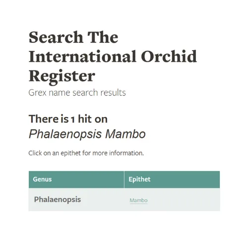 Kada je reč o sortnim orhidejama, glavni izvor pouzdanih informacija je Međunarodni registar orhideja, koji vodi Royal Horticultural Society (RHS) — Kraljevsko hortikulturno društvo Velike Britanije. Osnovano 1804. godine, RHS više od dvesta godina igra ključnu ulogu u razvoju botanike i hortikulture, a od 1960. godine upravo ono ima pravo da vodi međunarodni katalog hibrida orhideja.