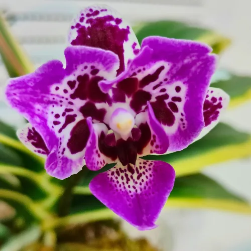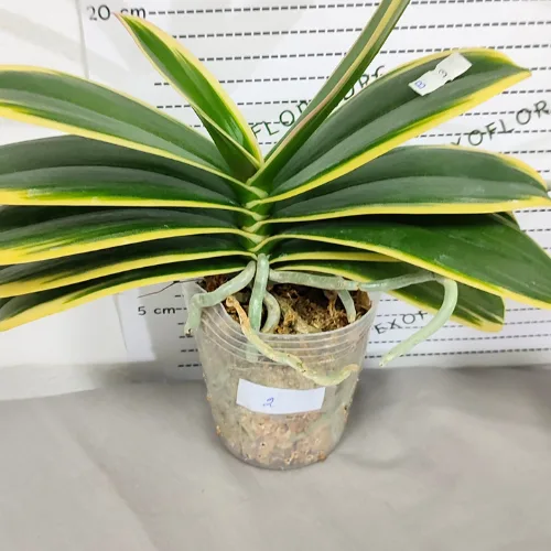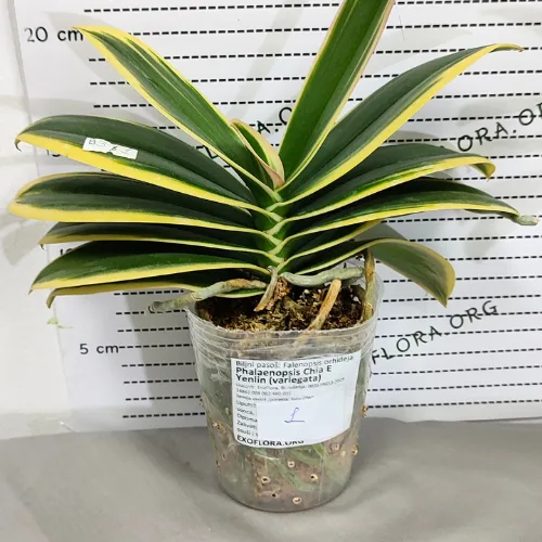Phalaenopsis Chia E Yenlin (variegata & 2 eyes) je pravi biser među falenopsisima. Njeni listovi nose raskošnu variegaciju u svetlim tonovima.